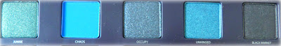 Je vous montre un peu les swatchs 😉 Il y a un fards qui m’a beaucoup surprise pendant les swatchs c’est Junkie. A 1ère vue il ressemble à un vert foncé que je n’apprecie pas trop, mais en fait c’est un très joli vert canard :p Et là, je l’apprécie beaucoup plus !!