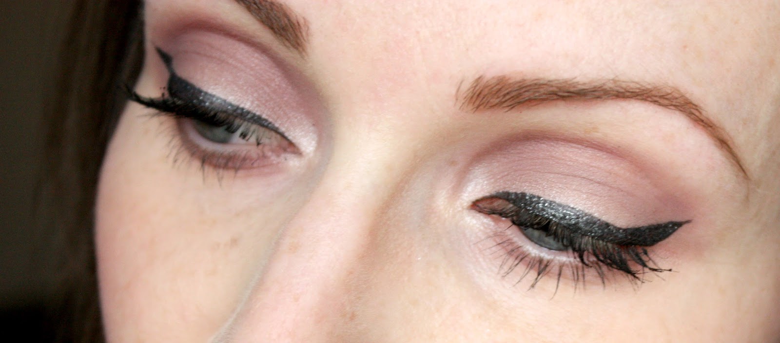 6. Enfin, tu peux terminer ce maquillage avec un trait de liner et du mascara. J’ai utiliser mon liner pailleté et mon mascara Peggy Sage.