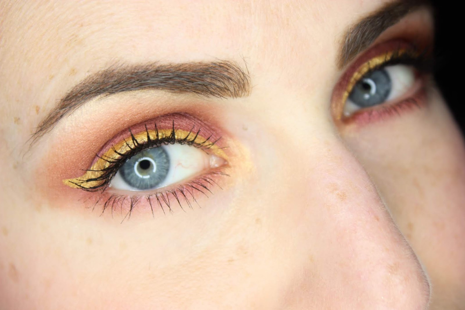 J’ai réalisé un maquillage au liner coloré, je t’avais déjà proposé il y a quelques mois un double liner où j’avais utilisé mon fard doré mais cette fois je l’ai utilisé seul. J’avais très envie de changer du noir sans pour autant faire quelque chose d’excentrique. Je trouve le doré parfait pour ça!