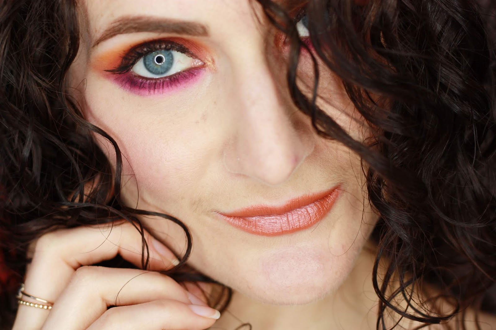 Comme je propose peu de maquillage sur le blog, je me suis dit que c’était l’occasion et j’avoue que l’été est un thème qui m’inspire. J’ai donc sorti pinceaux et palettes pour réaliser un joli makeup version coucher de soleil.