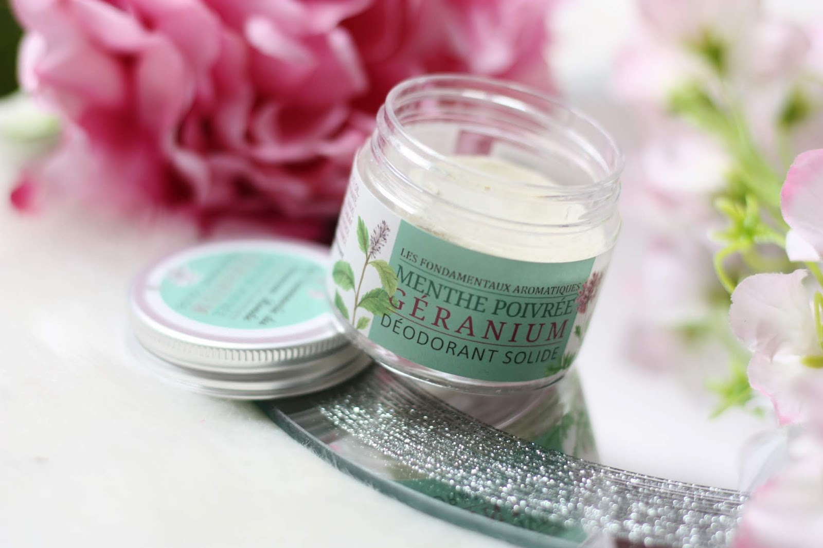 C’est ce dernier qui m’a fait découvrir la marque: le déodorant solide à la menthe poivrée et au géranium.