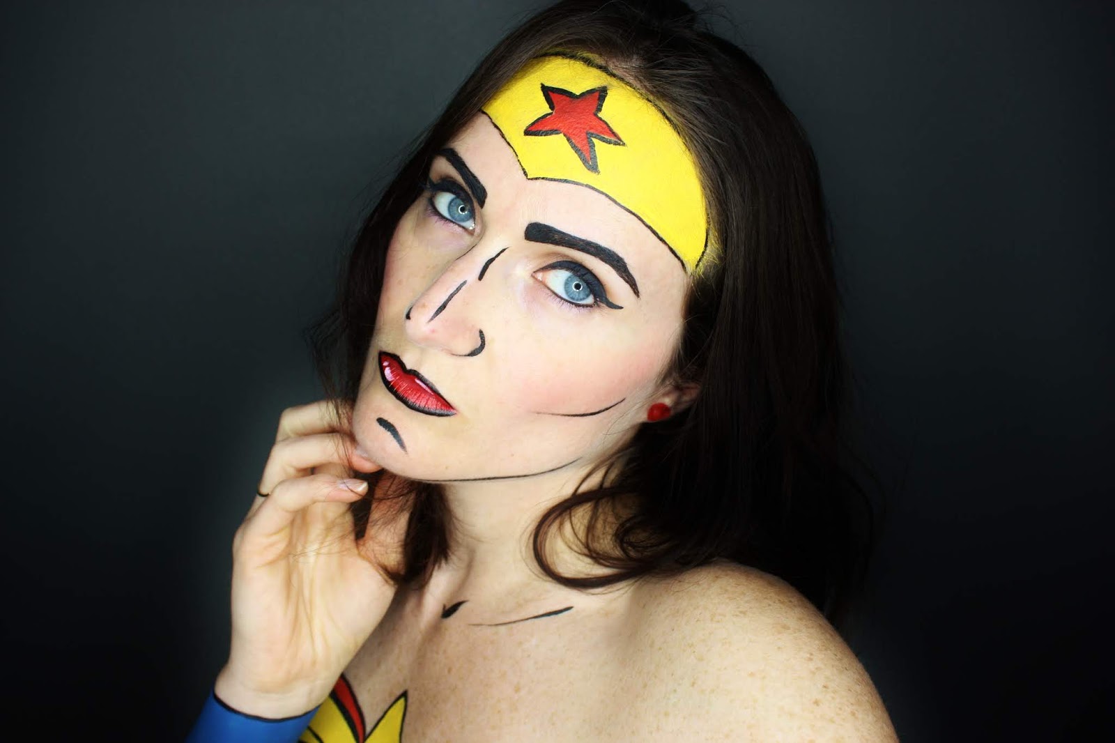 Ce mois de mai a pour thème les comics façon pop art. Comme j’avais envie de représenter un personnage féminin je n’ai pas longtemps hésité et je me suis tournée vers Wonder Woman ! J’avoue que Cat Woman est un personnage qui m’aurait également bien tenté. Je me suis amusée à faire ce maquillage et je suis ravie du résultat, j’espère qu’il te plaît également !