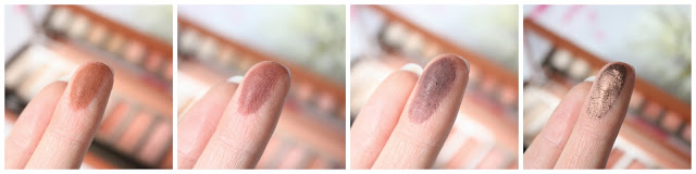 Je t’ai préparé tout les swatchs des fards de la palette que tu peux retrouver ci-dessous.