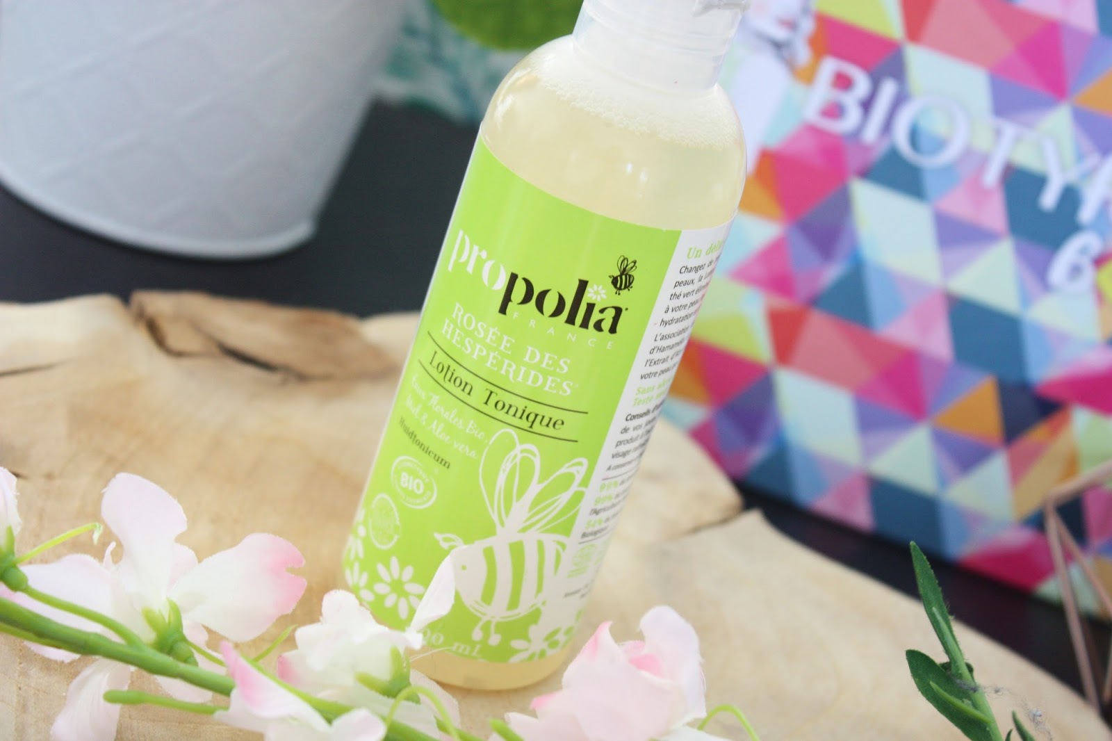 Après avoir utilisée l’eau micellaire contenue dans la box, je la rince grâce à la lotion tonique Propolia. Je n’avais encore jamais testé cette marque qui utilise les produits de la ruche dans ses soins. La lotion tonique est composée d’eaux florales bio (camomille et hamamélis), de miel,d’extrait d’abricot oxygène et d’aloe vera et permet d’éliminer les impuretés tout en apportant éclat et hydratation. Elle adoucit et revitalise la peau.