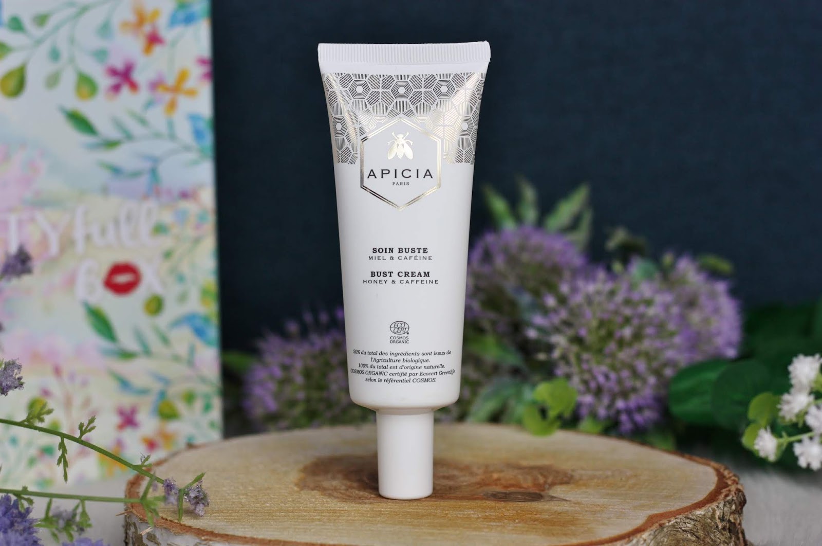 Claire, la fondatrice de la marque propose des soins naturels et bio, hauts de gamme et moderne. L’année dernière j’avais eu la chance de découvrir le soin ensoleillant progressif dans la Biotyfull Box L’Estivale. J’ai beaucoup aimé utiliser ce soin qui m’a procuré une belle mine durant l’été.Le soin buste Apicia permet grâce à sa synergie de 3 actifs: la caféine, la kalpariane et le miel de raffermir et sublimer le décolleté. Appliqué matin et soir, il permet de retrouver une peau plus tonique, élastique et ferme. Le soin est 100% naturel et certifié bio avec 50% du total des ingrédients d’origine biologique.